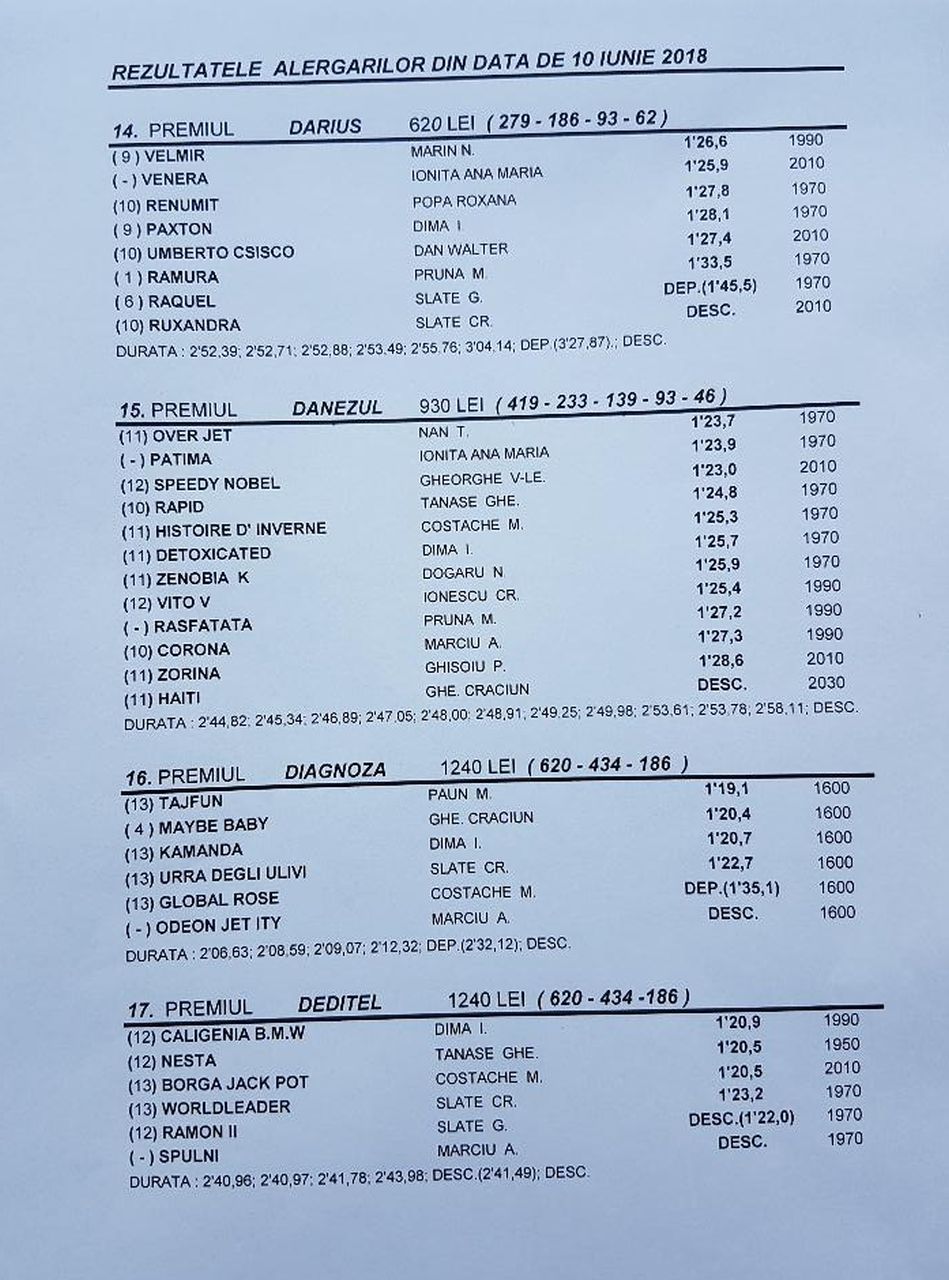 Câştigătorii celorlalte curse de trap ale zilei au fost: Velmir – Premiul Darius, Tajfun – Premiul Diagnoza şi Caligenia BMW – Premiul Dediţel.