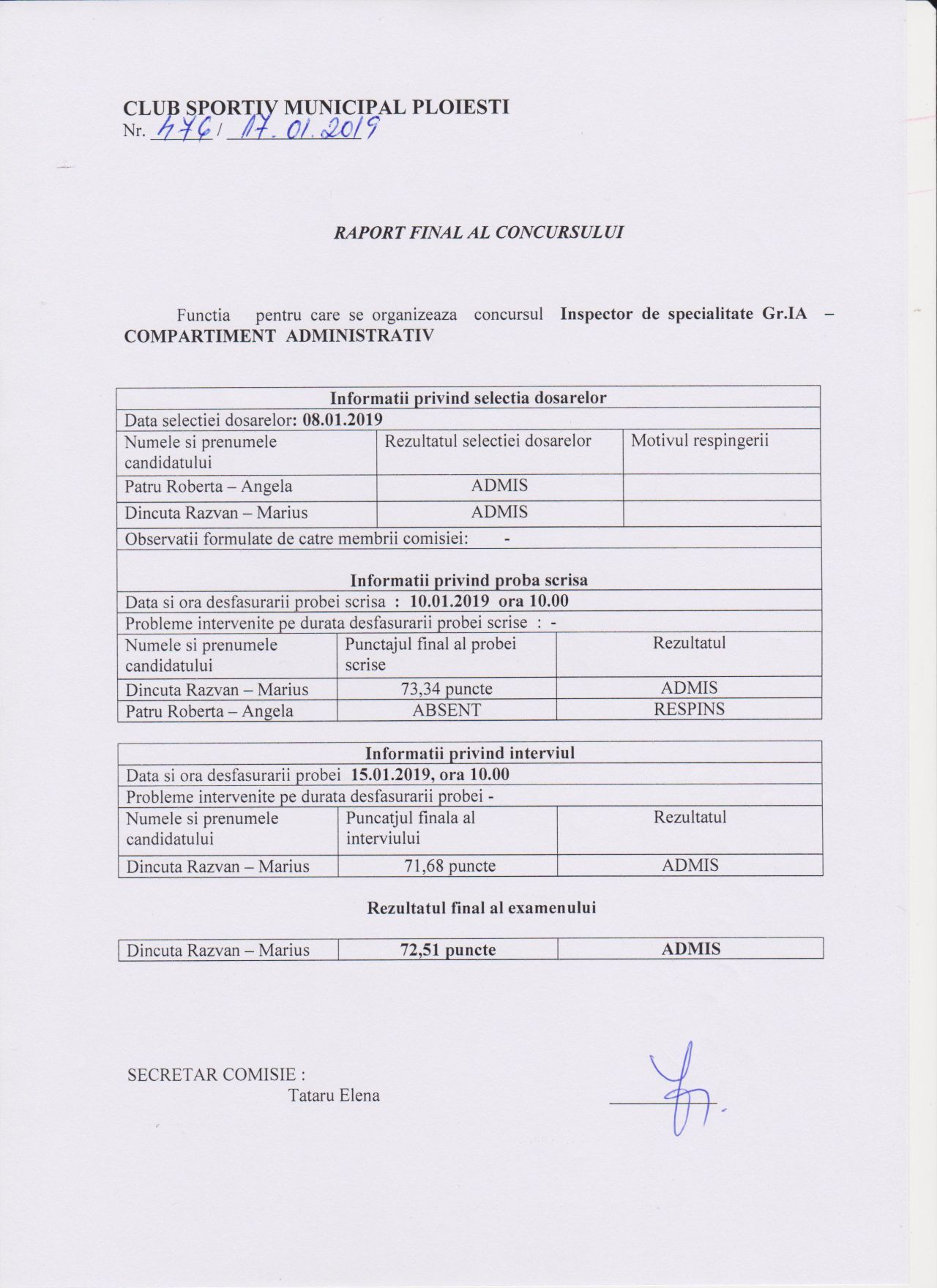 ianuarie1717 ianuarie 2019Rezultate concursuri angajare CSM Ploieşti, rapoarte finale – 17.01.2019De CSM PloiestiIn Anunturi