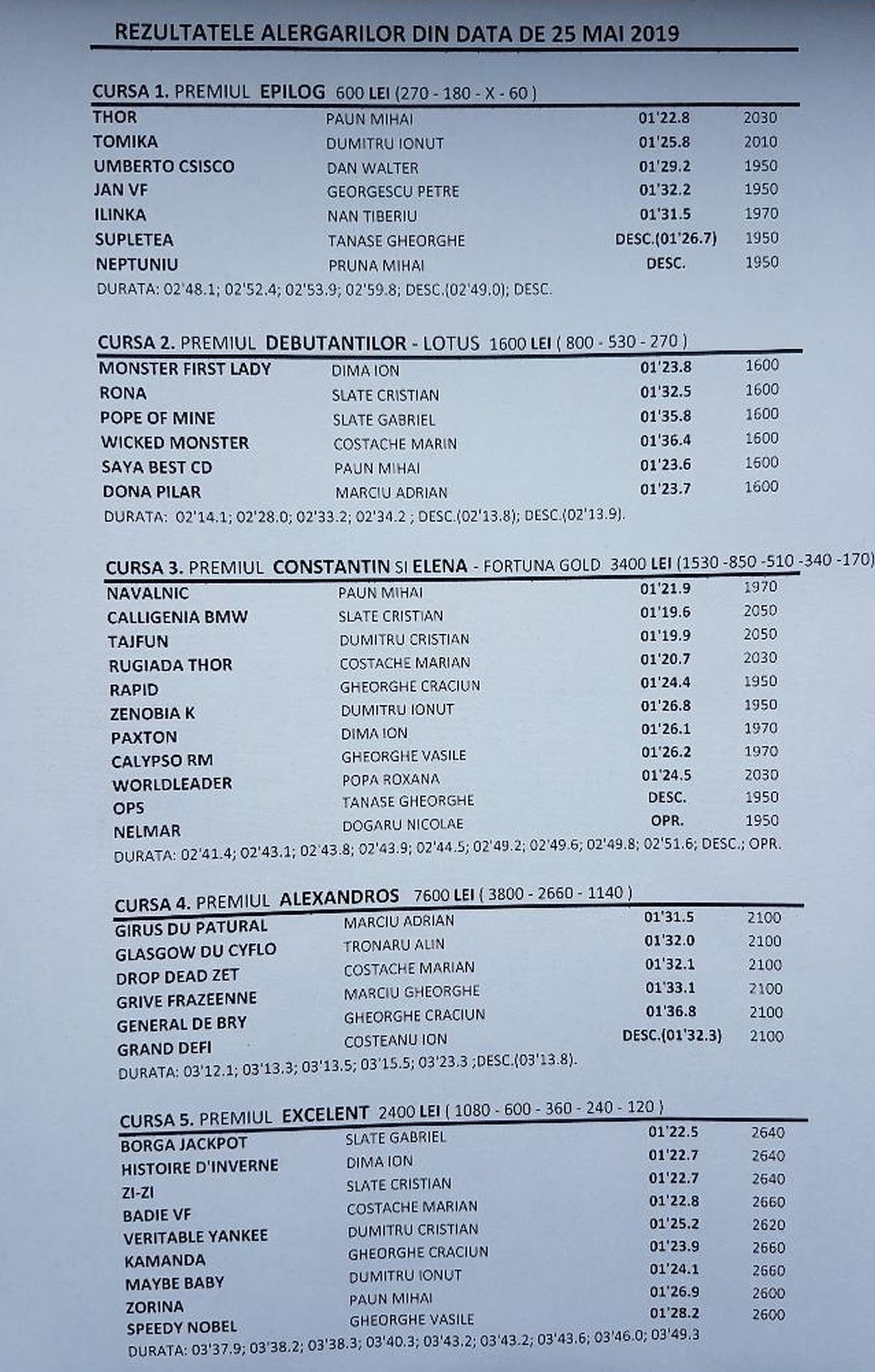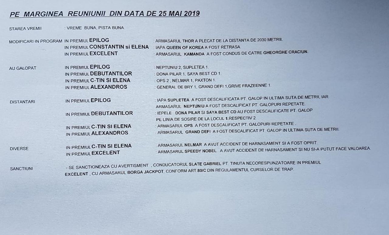Rezultate oficiale ale reuniunii: