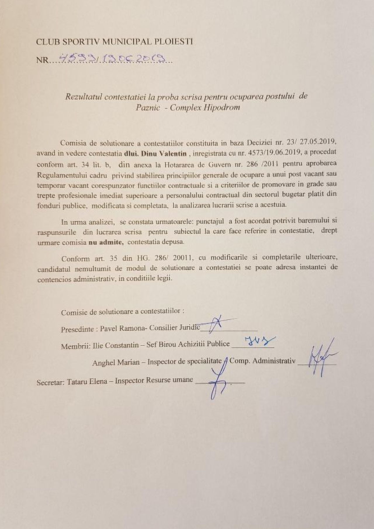 Rezultate contestaţii concursuri angajare CSM Ploieşti – 19.06.2019