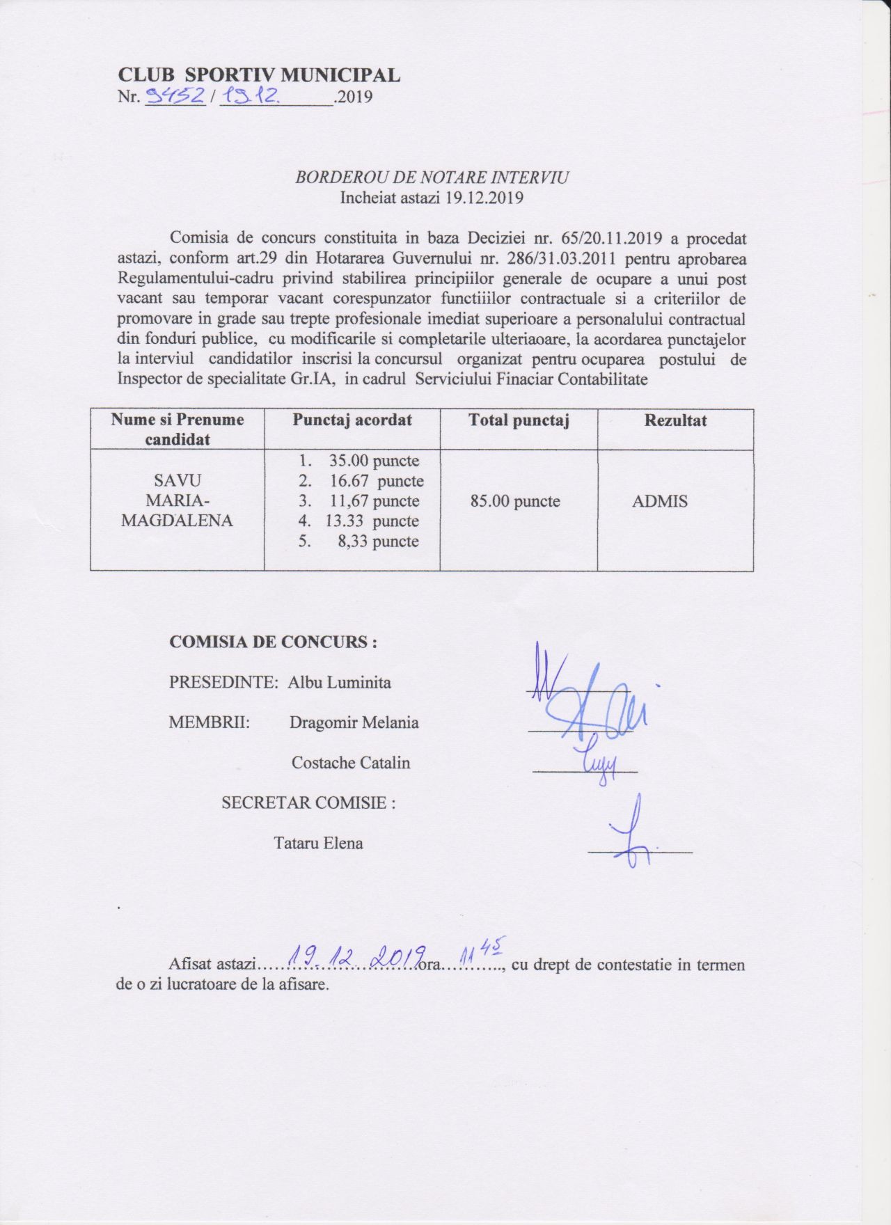 decembrie1919 decembrie 2019REZULTATE CONCURSURI ANGAJARE CSM PLOIEŞTI – INSPECTOR SERVICIUL FINANCIAR CONTABILITATE, PROBA interviuDe CSM PloiestiIn Anunturi
