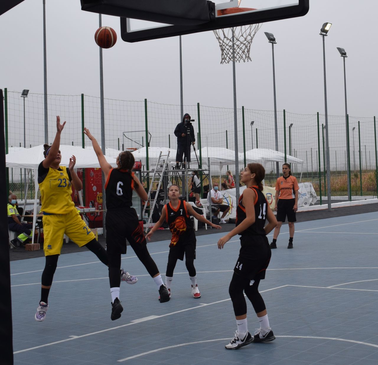 Pe terenul 1, unde jucau fetele noastre, scorul era în acel moment 41-33 pentru CSM Ploieşti, cu 65 de secunde de joc rămase din sfertul al treilea al întâlnirii cu orădencele. Totul, după o primă repriză cu multe ezitări de ambele părţi – cele mai bine de 6 luni scurse de la ultimele meciuri oficiale, dar şi dificultăţile de adaptare la jocul în aer liber fiind elemente care şi-au pus amprenta asupra jocului fetelor – şi un sfert al treilea cu mai multe realizări de ambele părţi, dar la fel de echilibrat ca primele două.