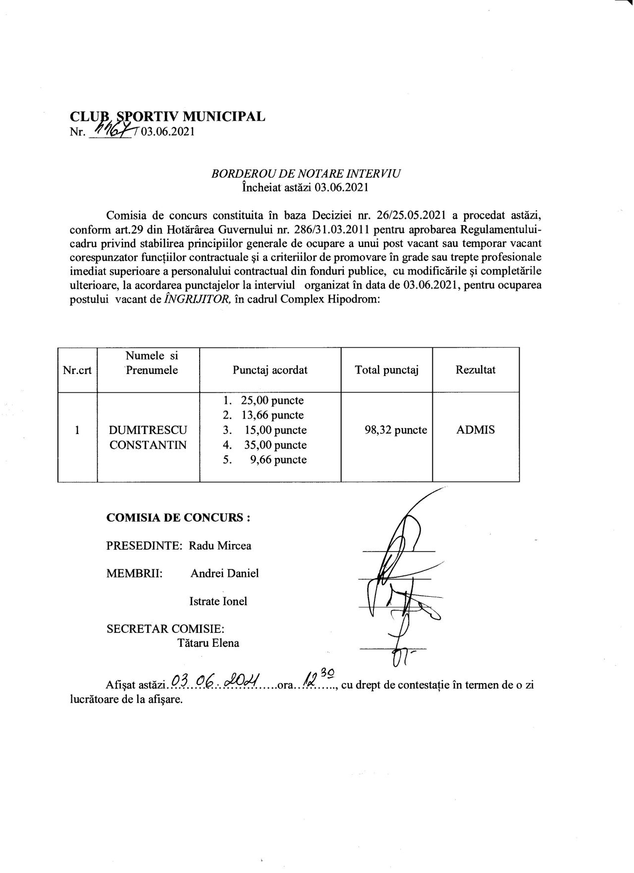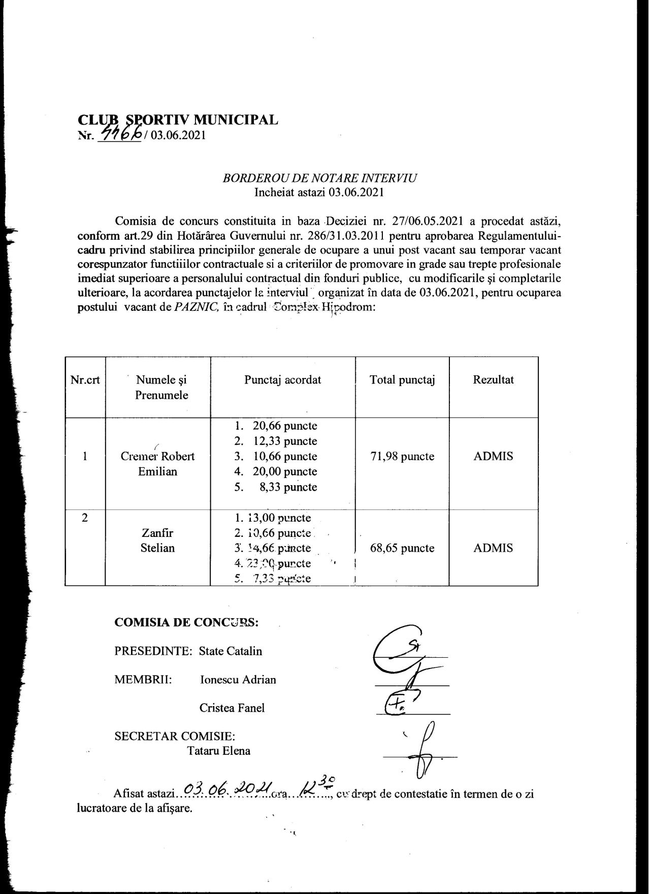 iunie33 iunie 2021Borderouri notare interviu paznic şi îngrijitor Complex HipodromDe CSM PloiestiIn Anunturi