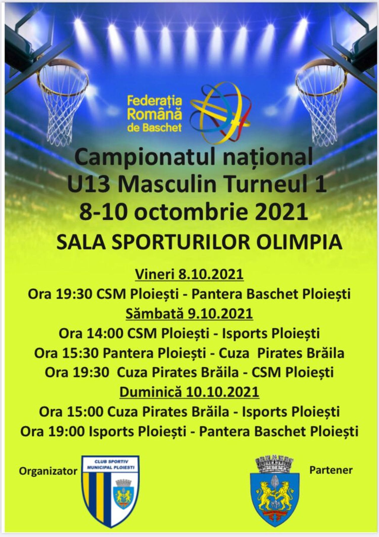 Echipa de băieţi U13 a fost repartizată în Seria J a primei faze, alături de ACS Isports Ploieşti, ACS Pantera Baschet Ploieşti şi ACS Cuza Pirates Brăila şi va găzdui, în weekend, primul turneu, în Sala Sporturilor „Olimpia”. Băieţii pregătiţi de Ionuţ Ivan joacă vineri, de la ora 19.30, cu ACS Pantera Baschet Ploieşti şi sâmbătă, de la ora 14.00, cu ACS Isports Ploieşti şi de la ora 19.30 cu ACS Cuza Pirates Brăila.