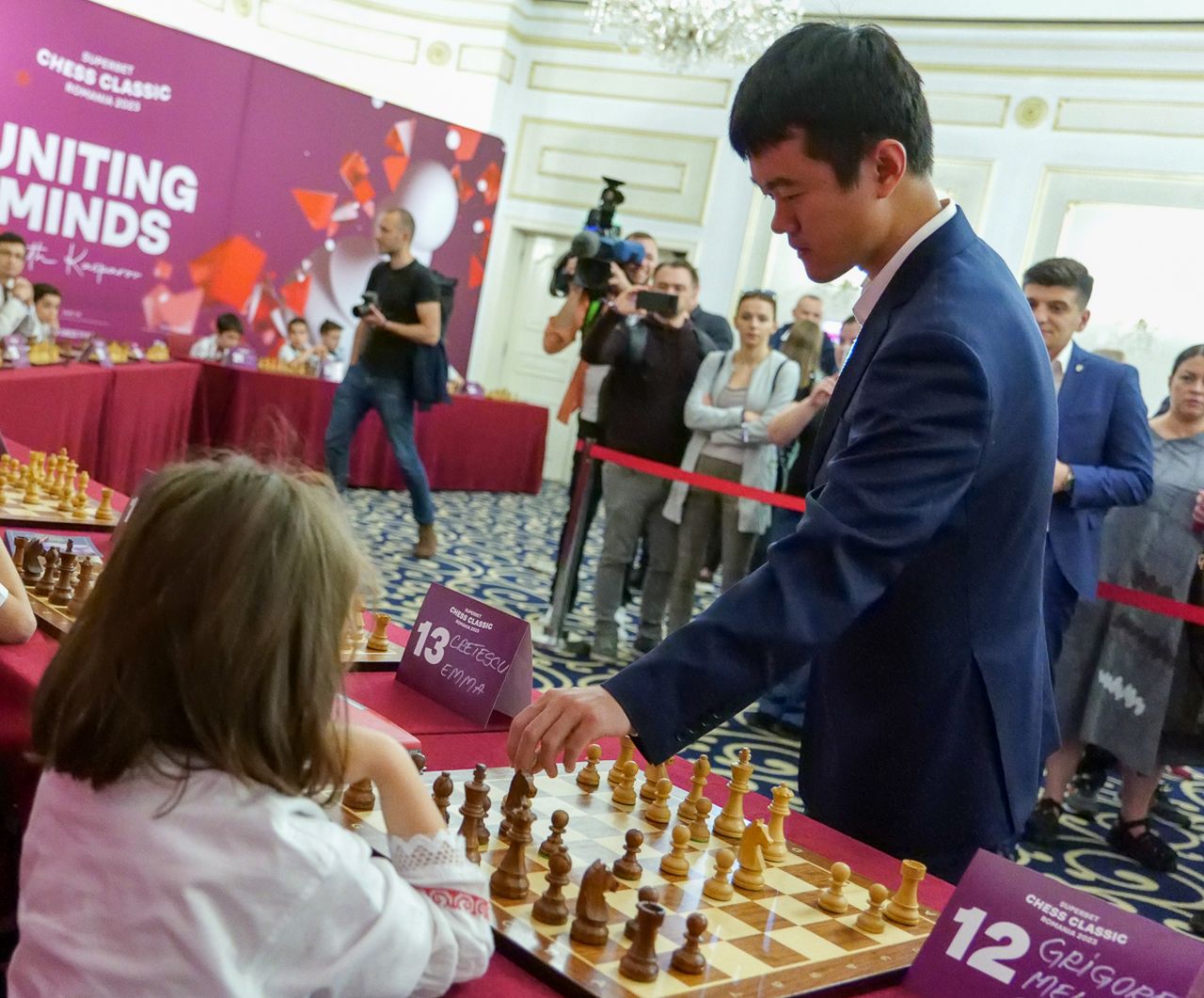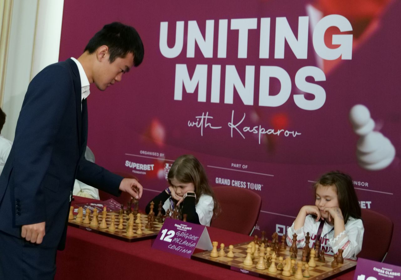 În cadrul ceremoniei de deschidere de aseară, Melania Grigore şi ceilalţi mici şahişti au participat la un „simultan” cu cei zece mari maeştri ai şahului mondial, primele mutări fiind făcute, însă, de fostul mare campion, Garry Kasparov!