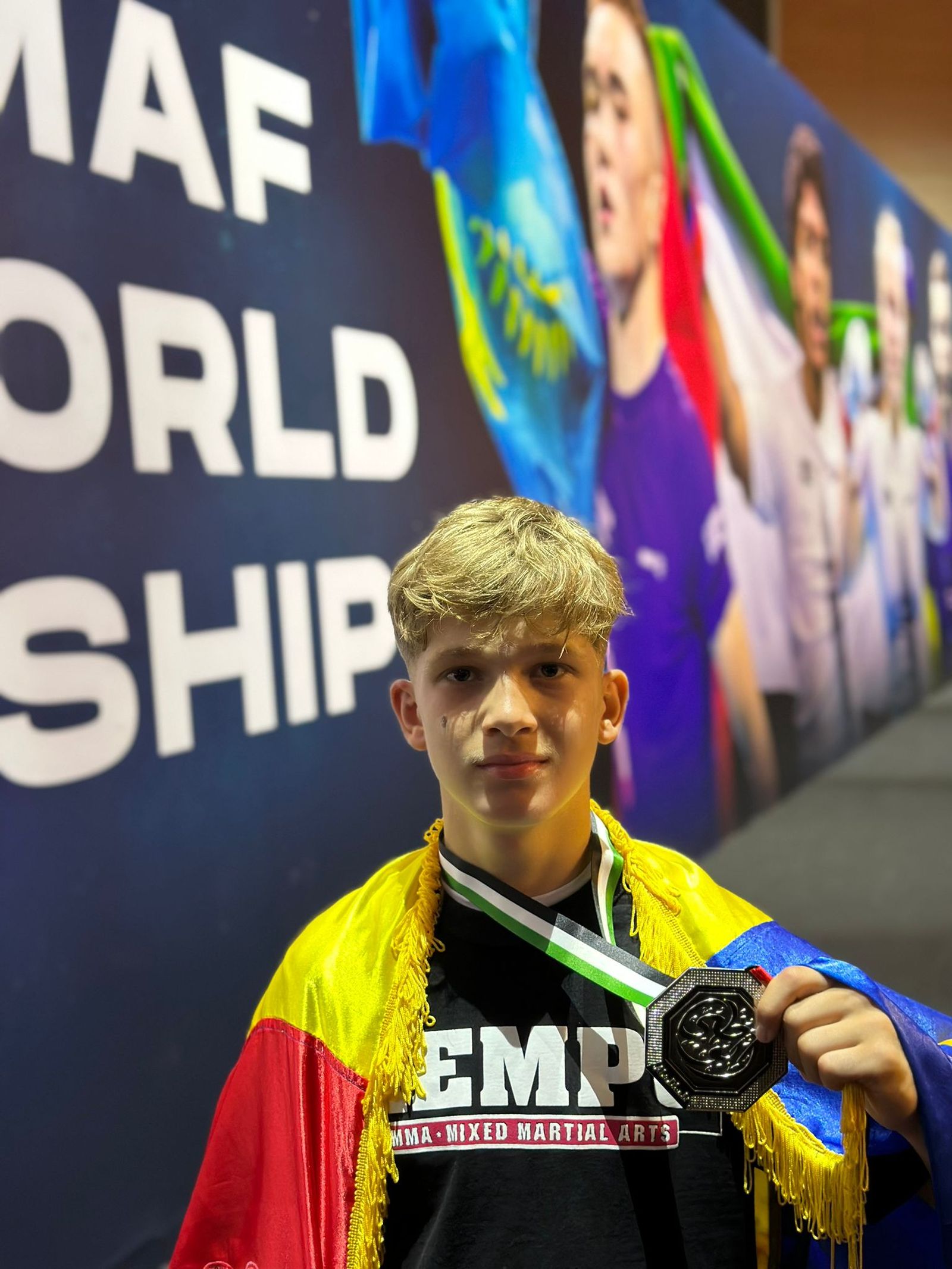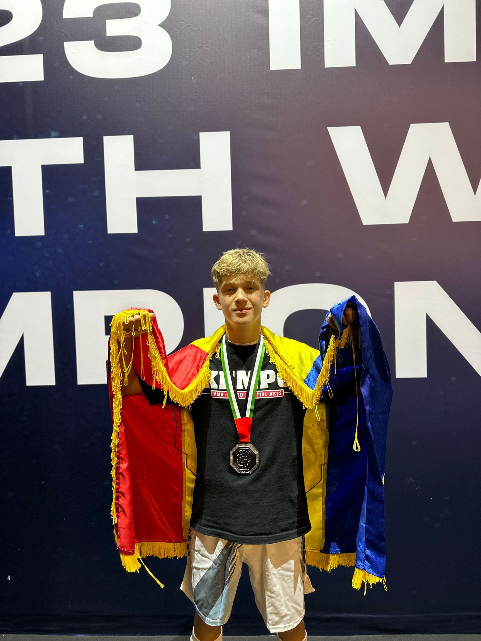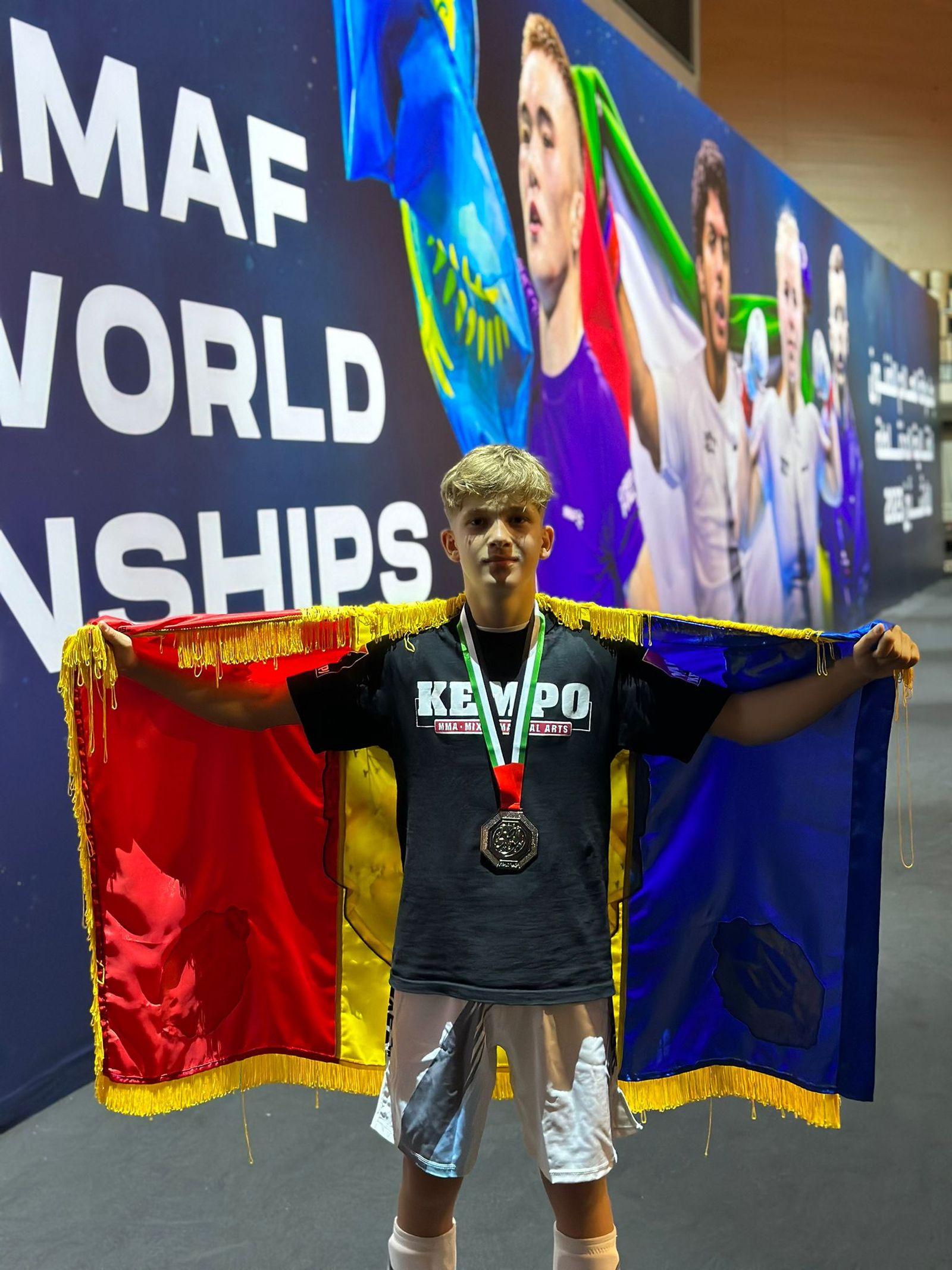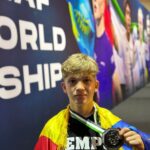 Sportivul secţiei de kempo a CSM Ploieşti, Edwin Petrea, şi-a depăşit cea mai bună performanţă realizată la Campionatele Mondiale de MMA – medalia de bronz obţinută în 2021 la Sofia, reuşind, aseară, să devină vicecampion mondial al categoriei „52 kg”, Juniori B (14-15 ani)! Performanţa a venit cu prilejul Campionatului Mondial de MMA – IMMAF pentru Juniori, ce se desfăşoară la Abu Dhabi în aceste zile, la capătul unei zile intense de concurs, în care elevul lui Ghiocel Petrea a reuşit să câştige patru meciuri, cedând, însă, în finala categoriei.