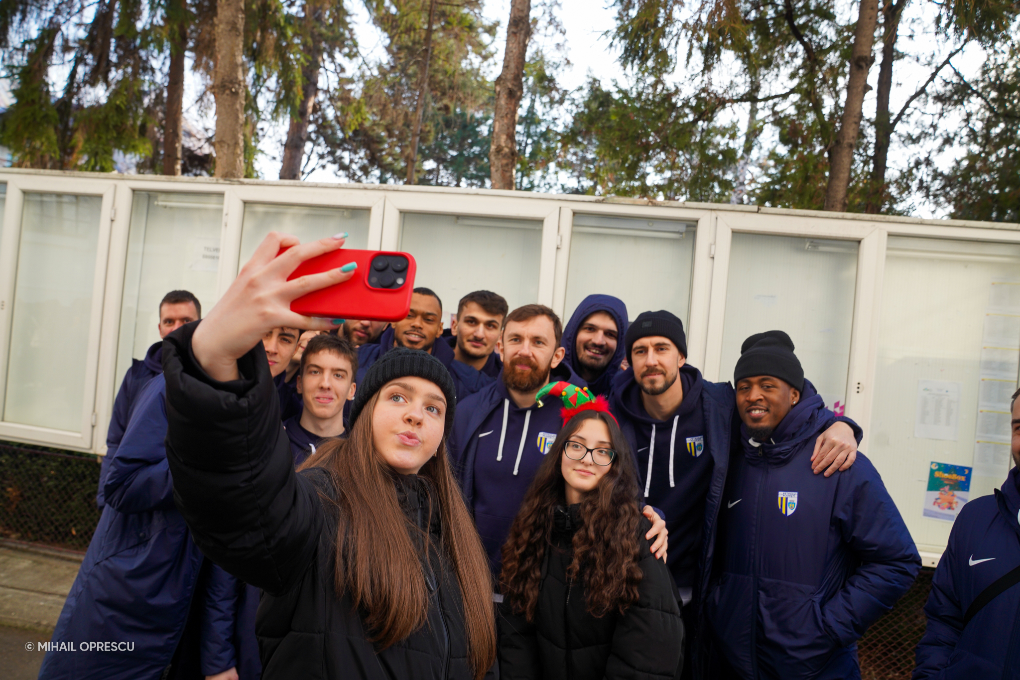 Mingea cu autografe oferită pentru tombolă şi-a găsit imediat câştigătorul, tragerea fiind făcută pe loc de organizatori: Erika Alecu, de la clasa 9H, a fost norocoasa, ea intrând rapid în posesia mingii chiar din braţele „căpitanului” Bogdan Popa.