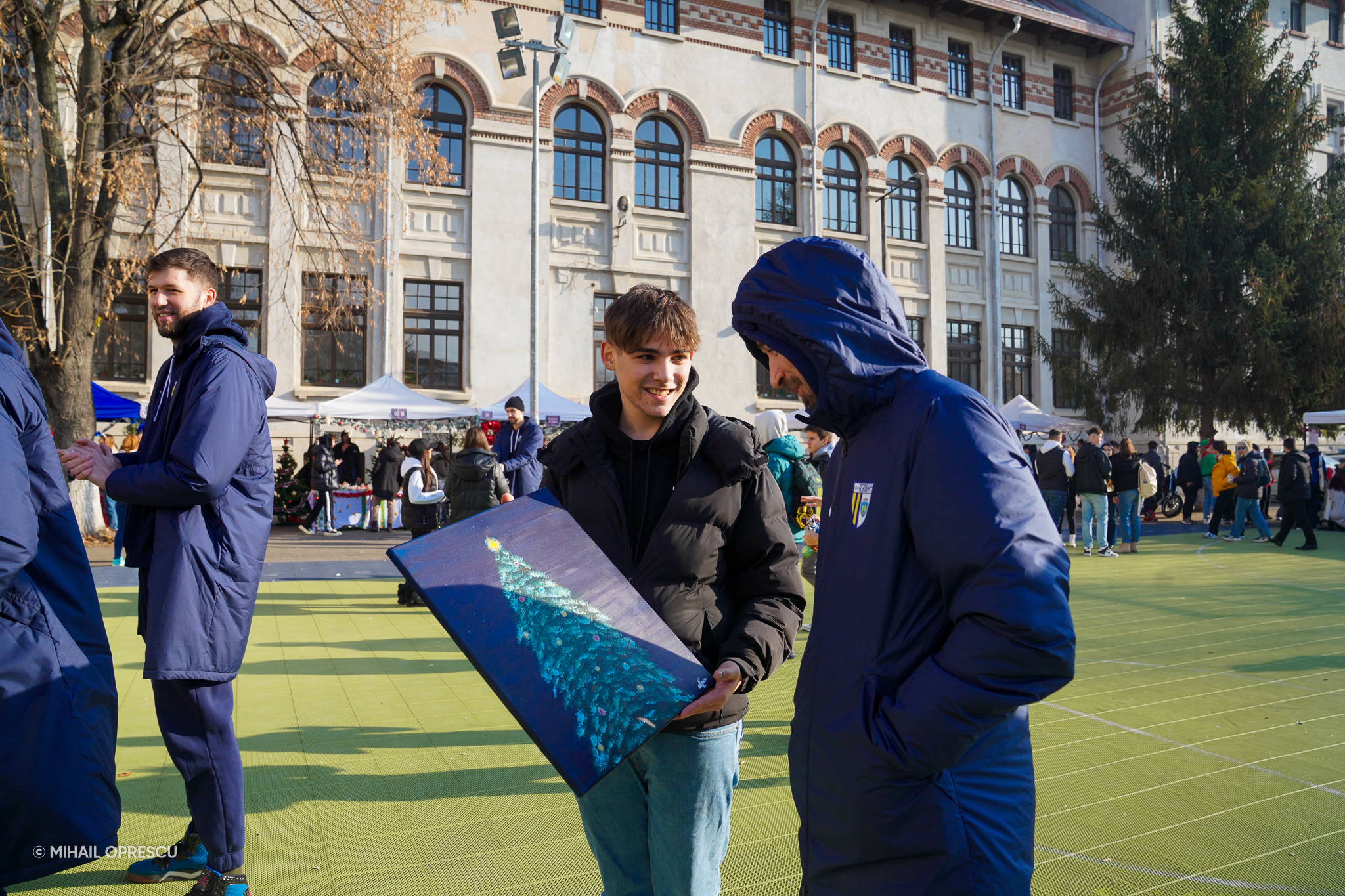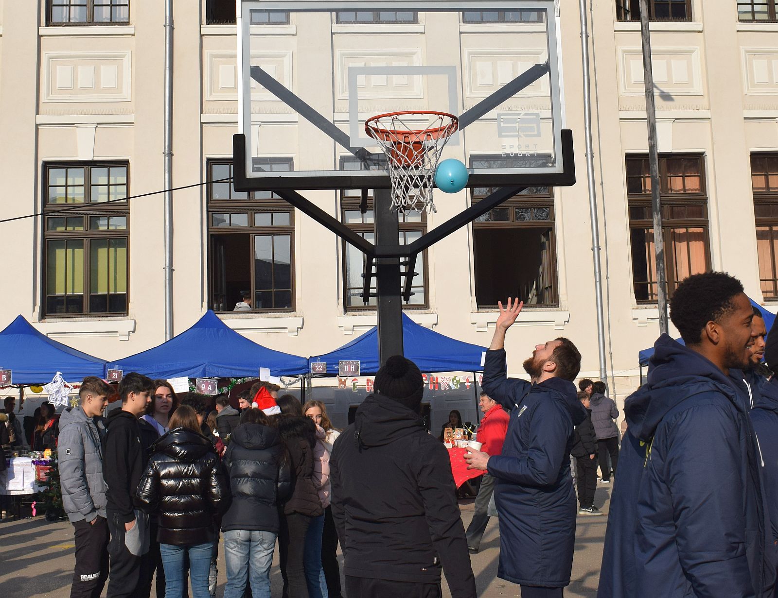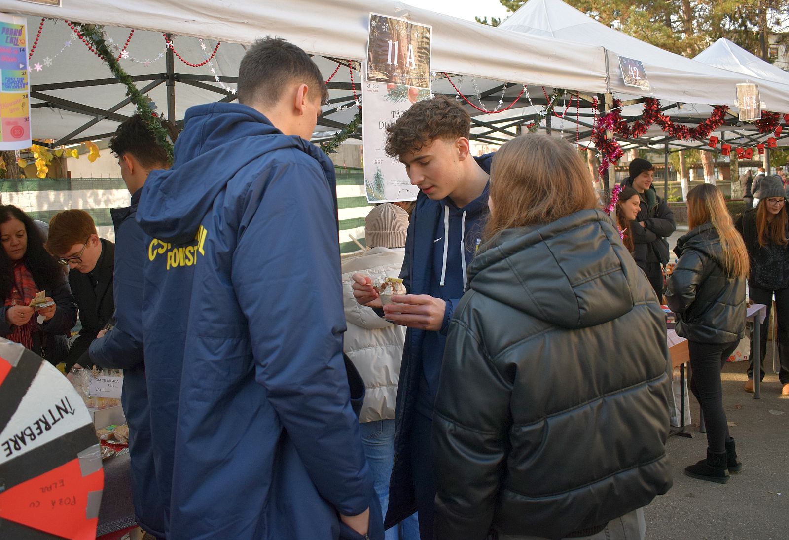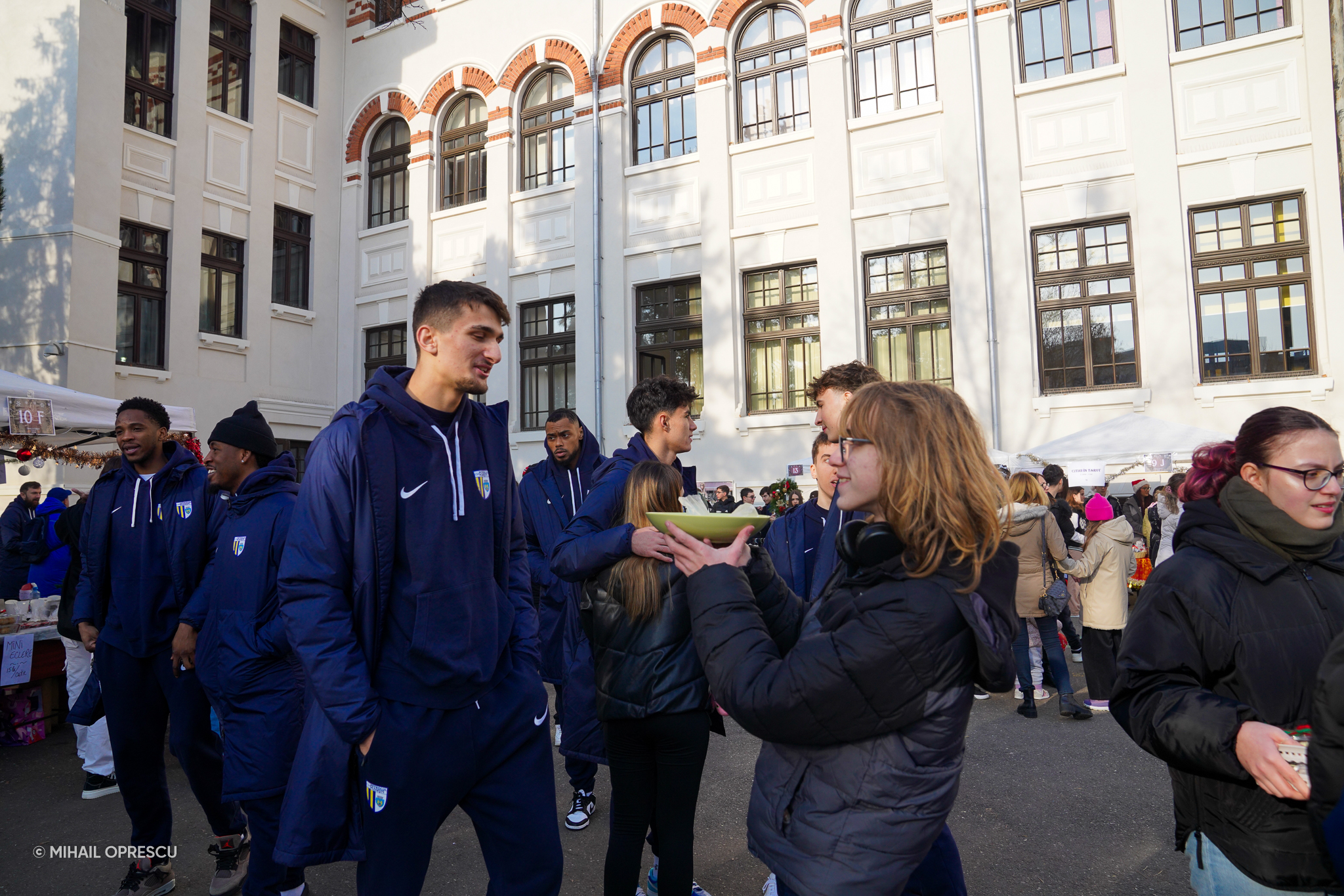 Întâmpinaţi de directorul instituţiei, prof. Laura Pandelache, baschetbaliştii au devenit rapid clienţi ai tinerilor comercianţi, care i-au îmbiat cu produsele „de casă” scoase la vânzare, după care a urmat un scurt moment de socializare chiar pe terenul de baschet din curtea colegiului. „Căpitanul” echipei, Bogdan Popa, a ţinut un scurt speech, în care i-a felicitat pe organizatori pentru acţiunea ajunsă la cea de-a 5-a ediţie, pentru ca, la final, să-i invite pe cei prezenţi să… întoarcă vizita şi să fie prezenţi sâmbătă, 30 decembrie, ora 17:30, în Sala Sporturilor Olimpia, la meciul CSM Petrolul Ploieşti – CS Vâlcea.