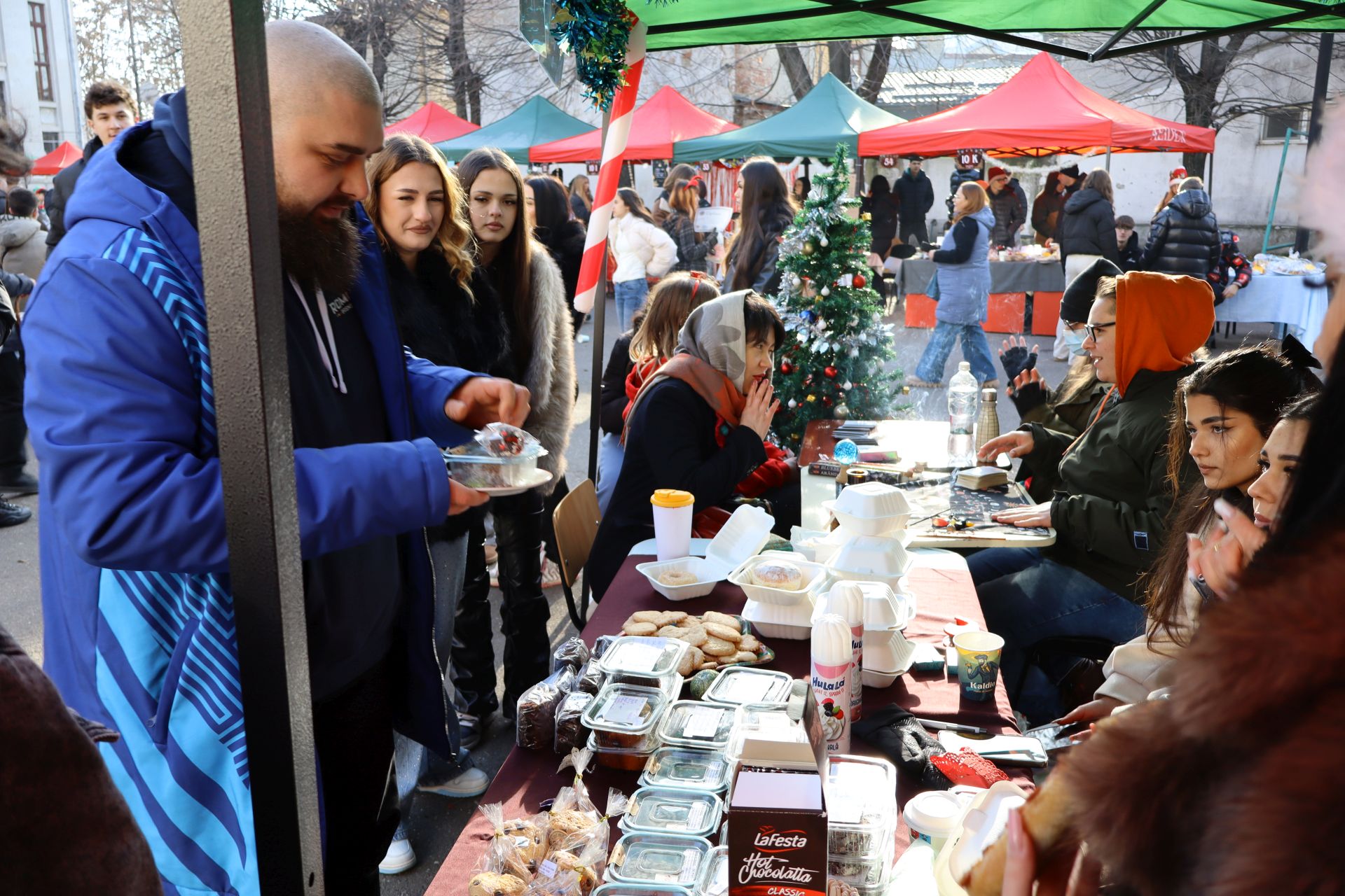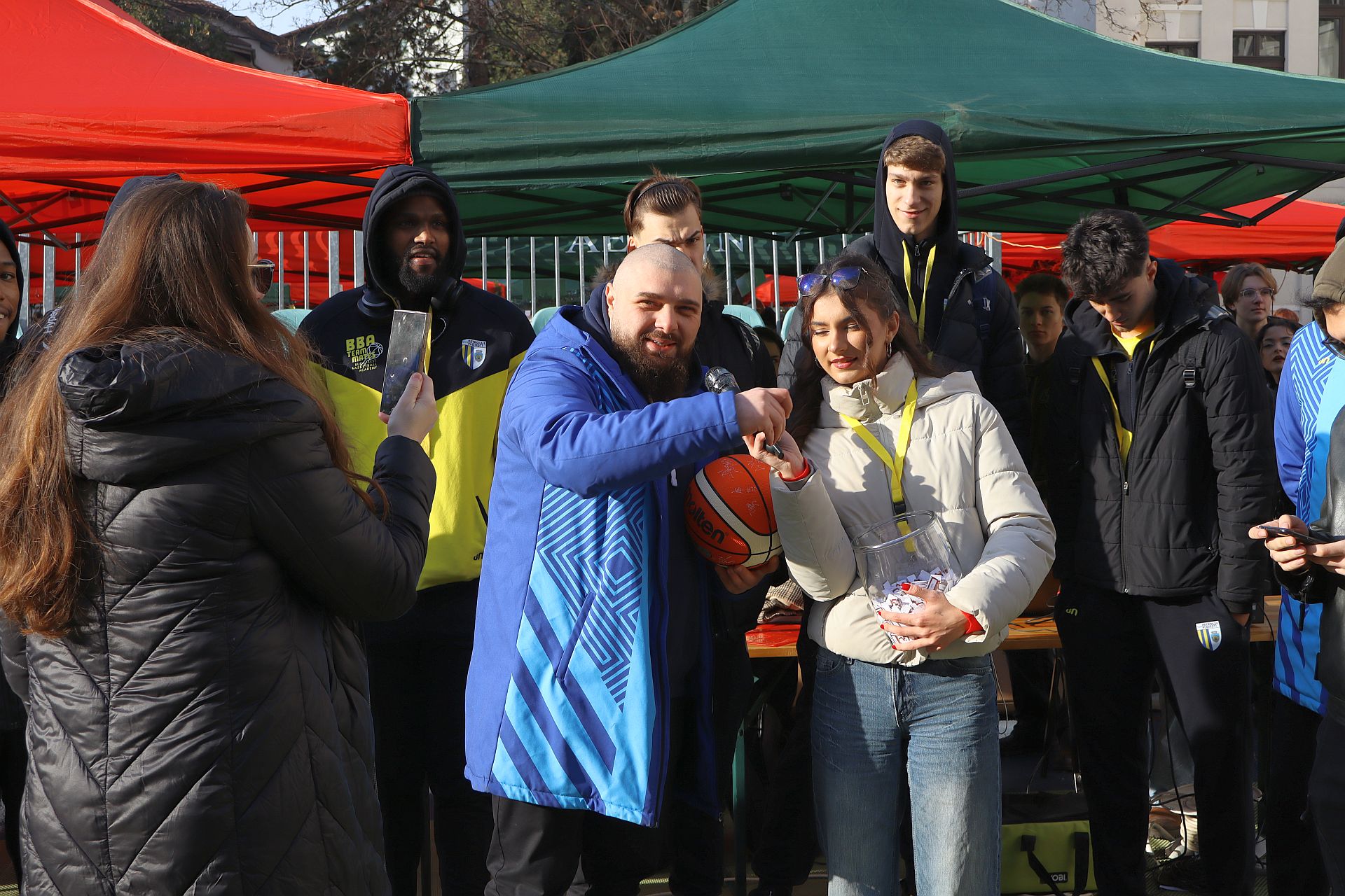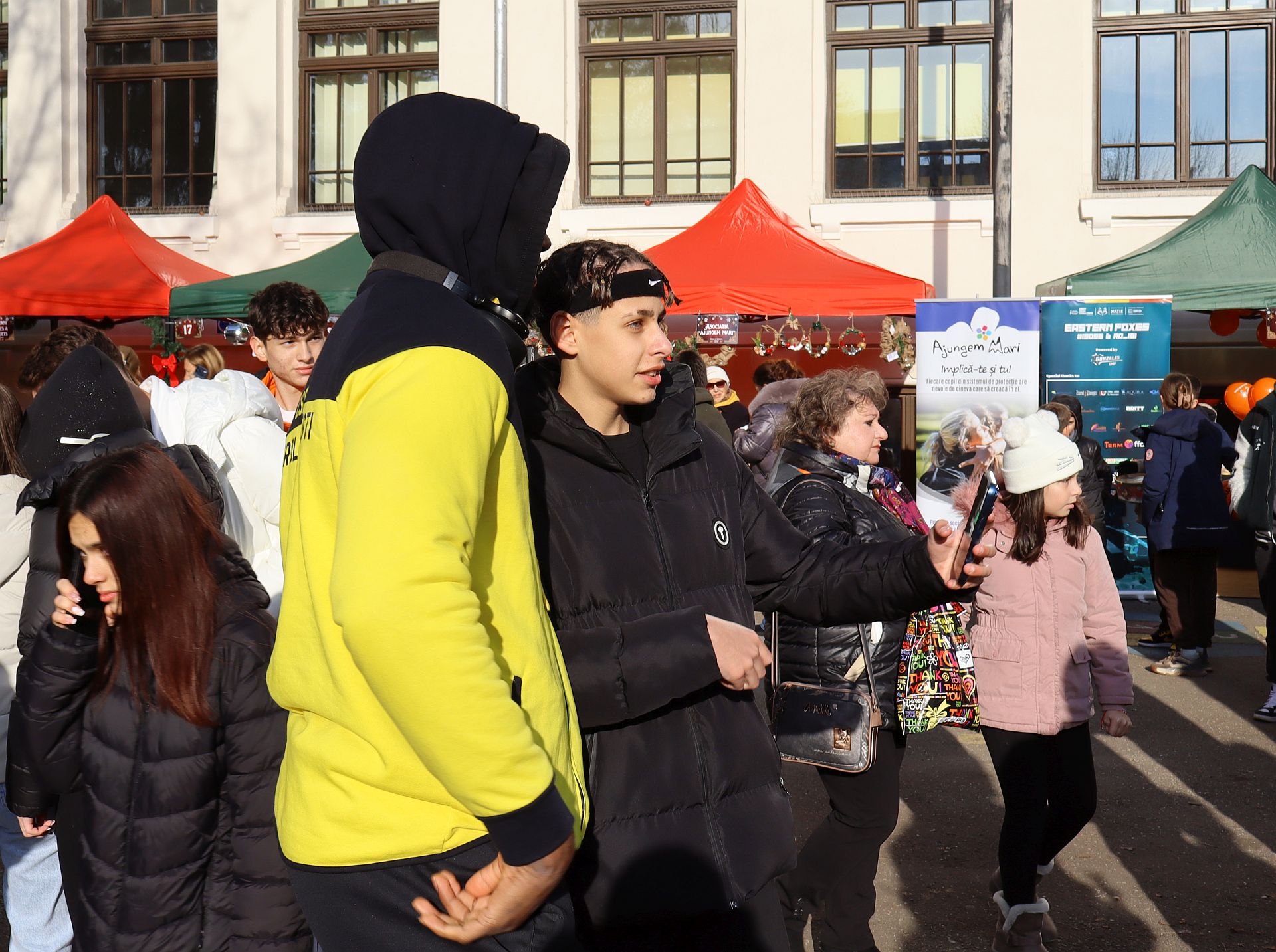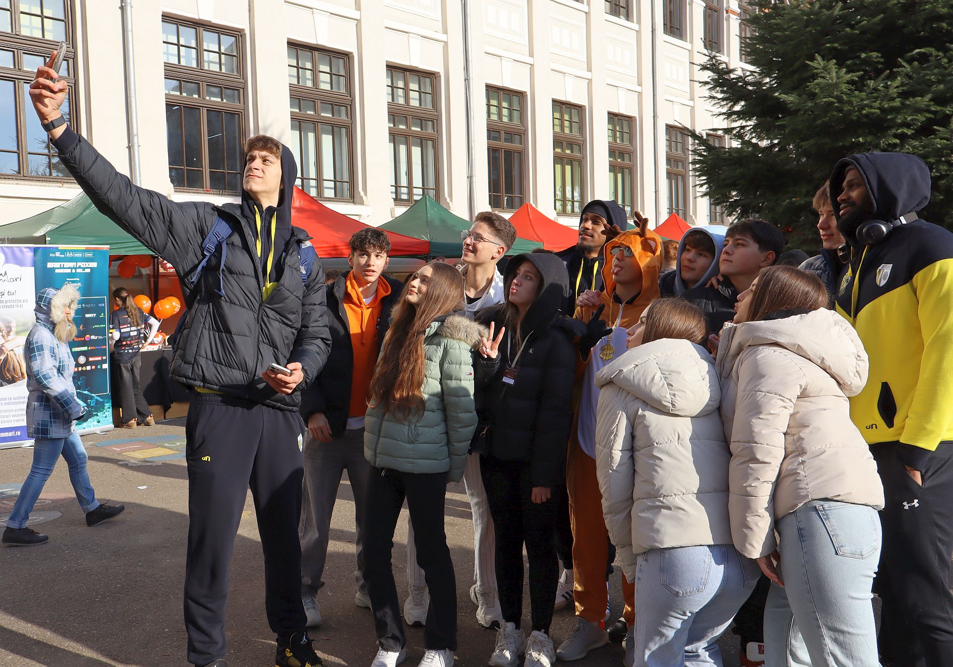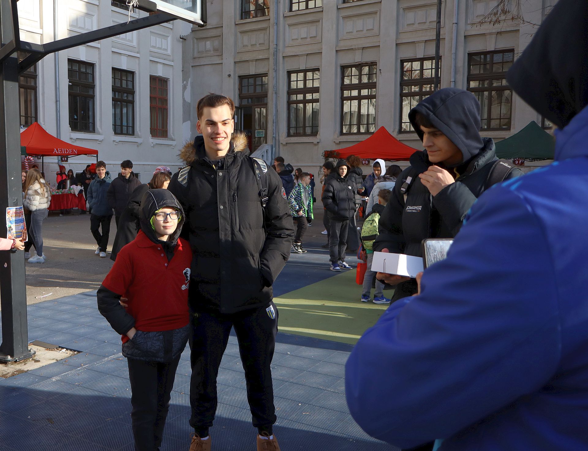Sportivii au devenit rapid clienţi ai tinerilor comercianţi, care i-au îmbiat cu produsele „de casă” scoase la vânzare, după care a urmat un scurt moment de socializare chiar pe terenul de baschet din curtea colegiului: poze, autografe şi răspunsuri oferite tinerilor interesaţi de viaţa de baschetbalist.