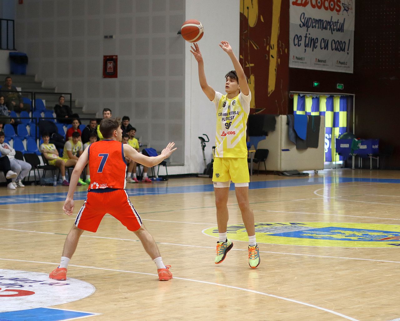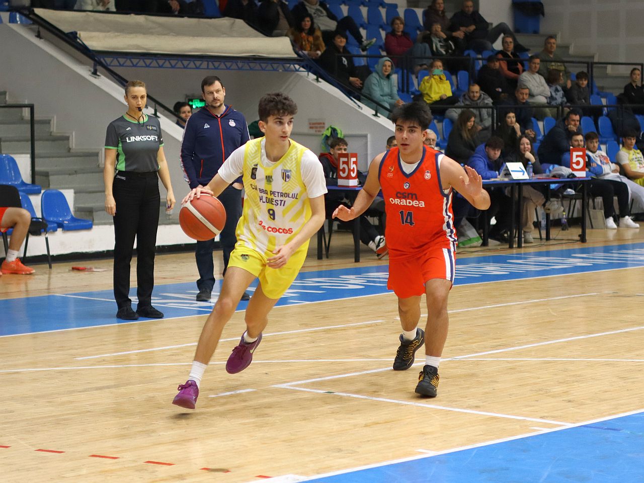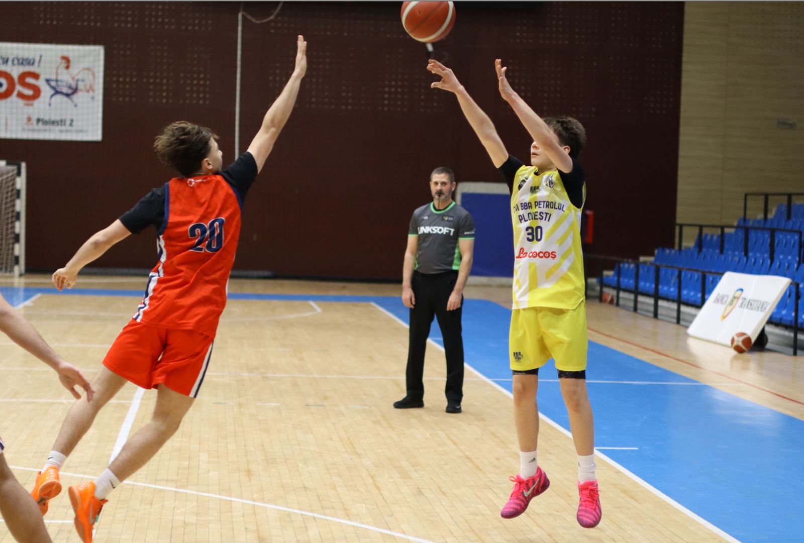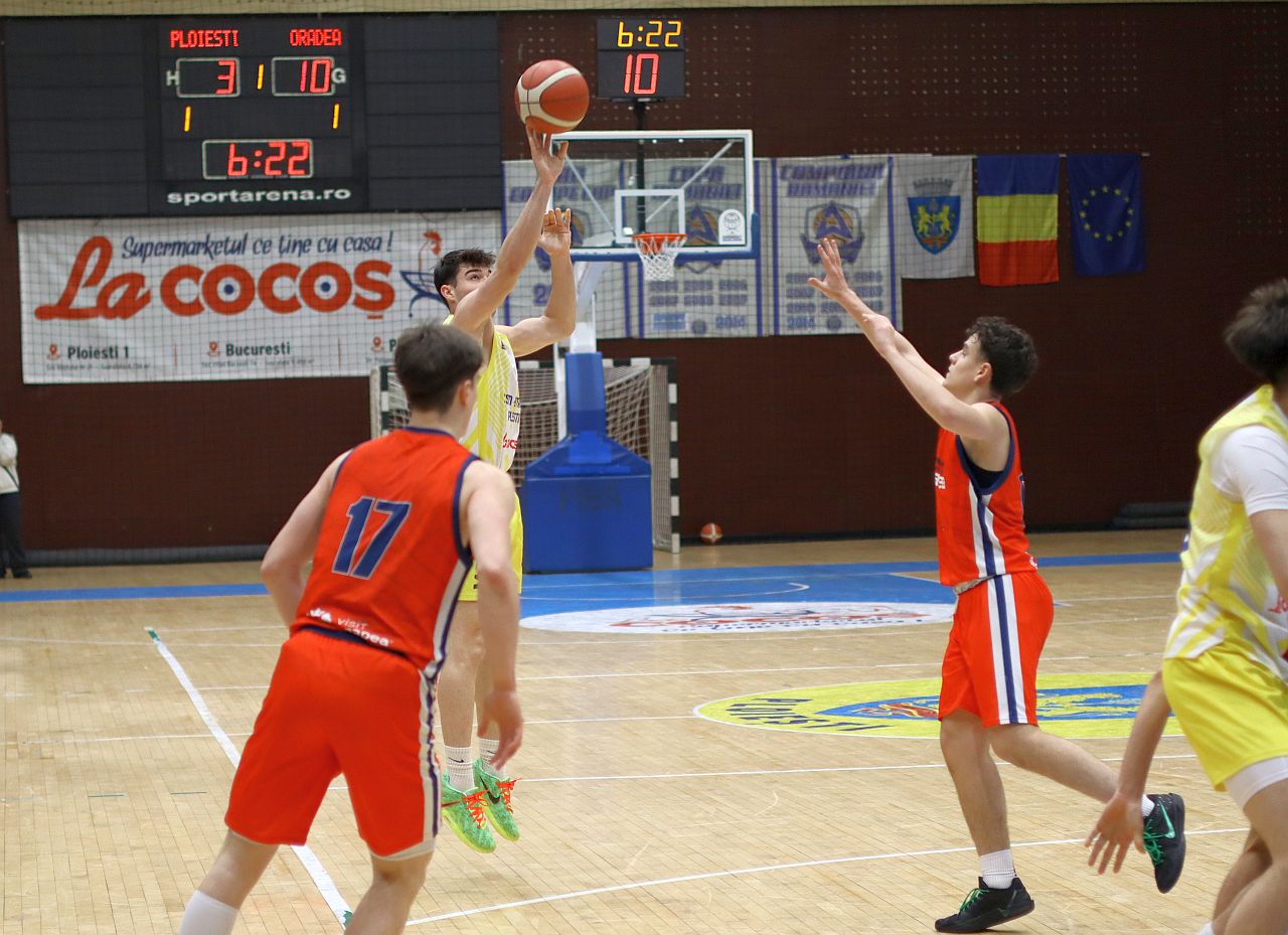 Partida a contat pentru prima etapă a Fazei a II-a a campionatului Ligii 1, în care băieţii noştri joacă în Grupa Echipelor Satelit, şi nu le-a pus probleme elevilor lui Ionuţ Ivan şi Cristi Trandafir decât în primul sfert. Oaspeţii au început mai atenţi şi au condus în debut chiar şi la 7 puncte, însă, de la 13-20, ploieştenii s-au trezit şi, după 25-21 la finele primelor 10 minute, au avut un parţial de 13-0 în sfertul secund prin care au lămurit soarta partidei.