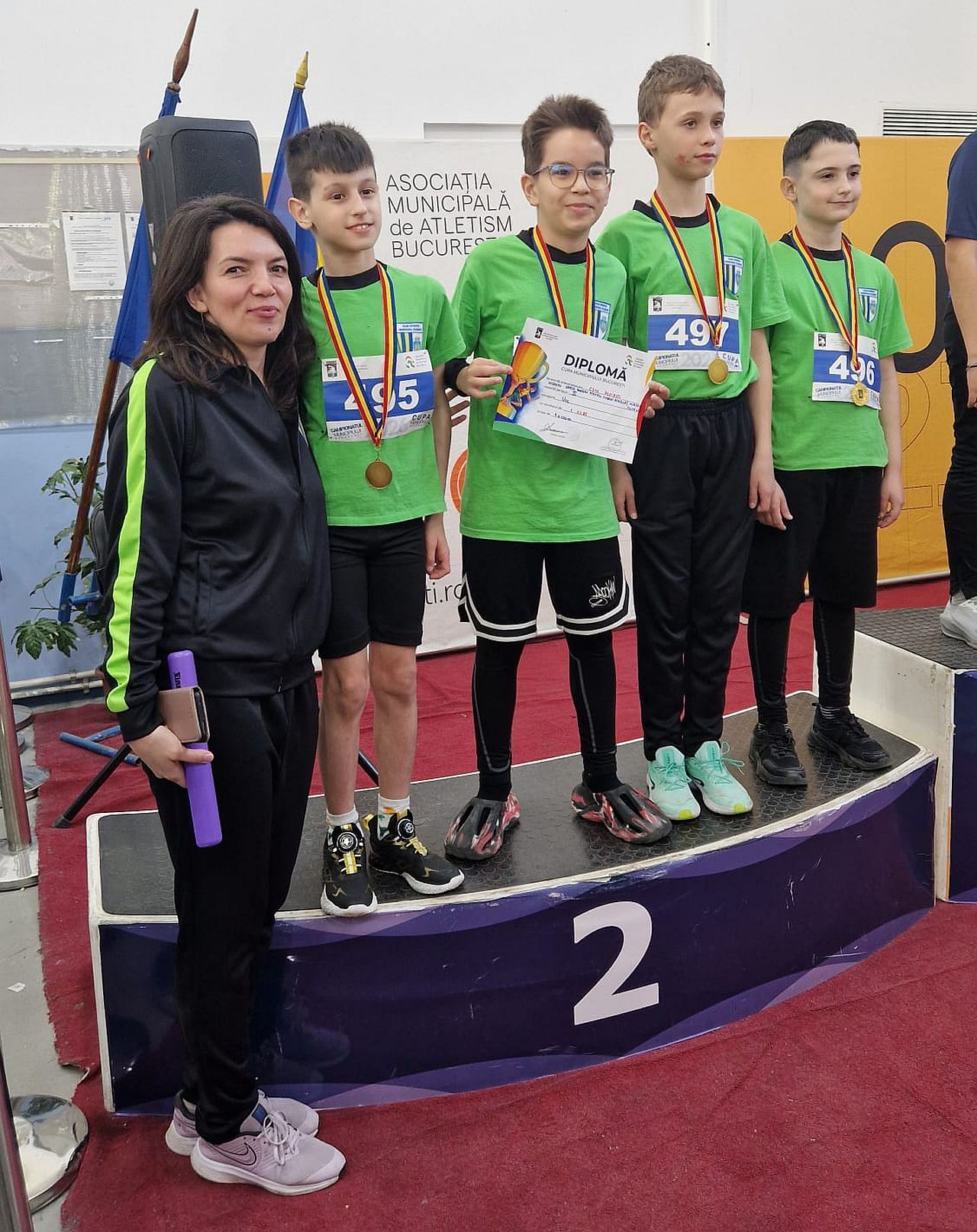 Principala performanţă a sportivilor pregătiţi de Maria Sîrbu i-a aparţinut ştafetei de 4×100 metri de la U12, care a ocupat locul al 2-lea cu timpul 1:03.85 minute, în formula Nicolas Darie, Bogdan Stanciu, Andrei Scarlat, Mircea Covaliu.