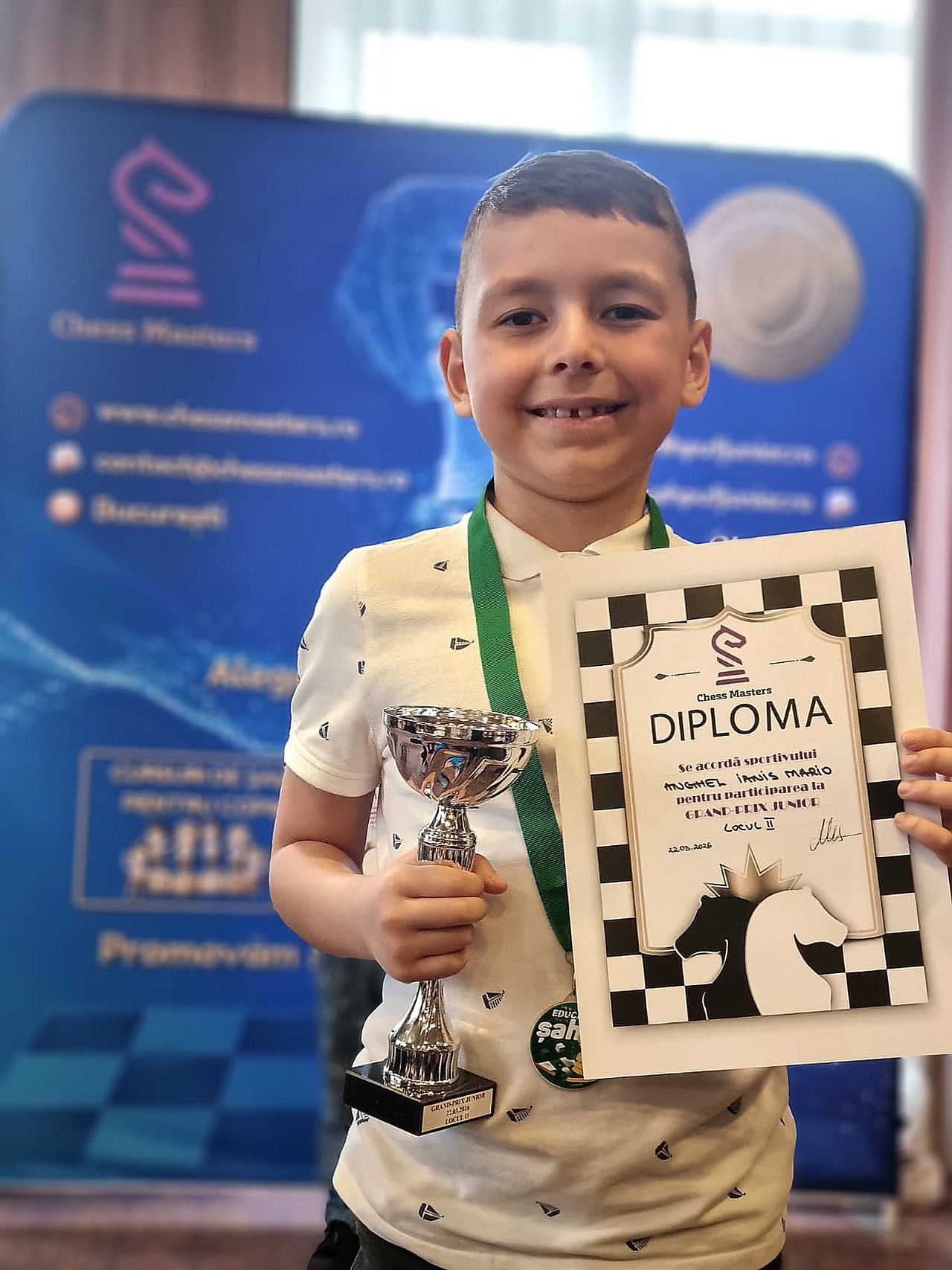 Nu în ultimul rând, duminică, Ianis Anghel a ocupat locul al 2-lea la categoria „Open C” în cadrul Grand Prix Junior, competiţie desfăşurată în incinta „RIN Airport Hotel” în organizarea Chess Master şi Şah Puf Junior.